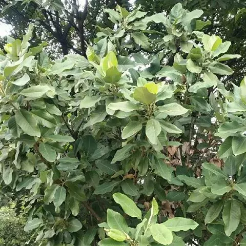 乔木,高达50米,胸径达50厘米;嫩枝被柔毛;顶芽长锥形,被白色长毛。叶革质,卵形或椭圆状卵形,长8-14厘米,先端渐尖或尾状渐尖,基部圆或阔楔形,上面有光泽,侧脉每边12-15条,纤细,末端与密致的网脉网结而不明显,叶柄长1.5-2厘米,无托叶痕。