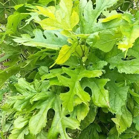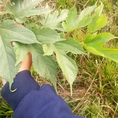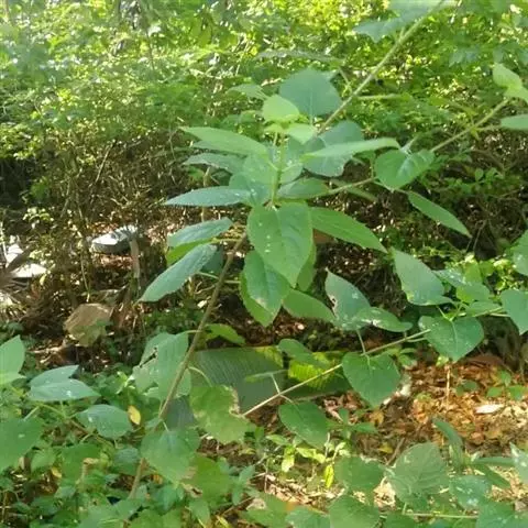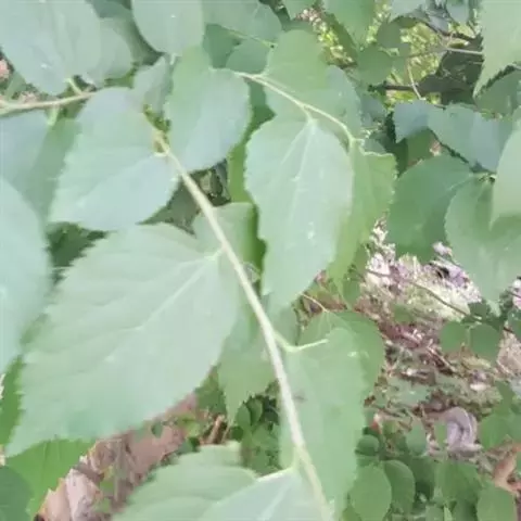 乔木,高约10米;树皮暗褐色;小枝被淡褐色柔毛。叶广卵形至近心形,长6-12厘米,有可达20厘米,宽7-11厘米,质厚,先端尖或短渐尖,基部心形,边缘具粗而相等的锯齿,通常不分裂,表面深绿色,粗糙,背面淡绿色,被短柔毛和绒毛;托叶膜质,披针形,被褐色柔毛。