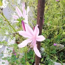 长筒石蒜草本,地生。鳞茎卵球形;叶披针形;伞形花序,有花5-7朵,花白色;花被裂片腹面稍有淡红色条纹,…