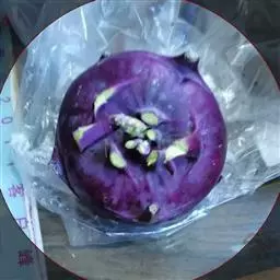 将清理好的鳞茎基底以米字型八分切割,切割深度约为鳞茎长的1/2-2/3。消毒、阴干后插入湿润沙、珍珠岩等基质中,3个月后鳞片与基盘交接处可见不定芽形成,逐渐生出小鳞茎球,经分离栽培后可以成苗。