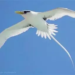 红尾鹲:头尾长960-1020厘米,休重600-830克。全身白色,配以红色长尾羽与朱色的嘴,…