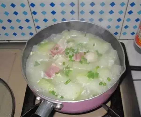 原料:冬瓜100克,瘦羊肉80克,枸杞3克,生姜10克,葱10克。