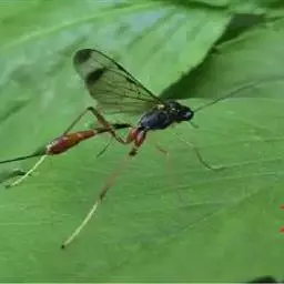 姬蜂属膜翅目姬蜂科,体长3-40毫米,黄褐色;触角细长;翅透明,前翅有两条回脉;腹部较狭长,圆筒形,腹面膜质;雌蜂有产卵器。有体外和体内两种寄生;寄生为鳞翅目、鞘翅目、膜翅目等全变态昆虫的幼虫和蛹,有单寄和多寄;种类多,数量大,寿命长,善飞,寄生本领强,也是蜘蛛的寄生昆虫。全国均有分布,我国约7000种。分布很广,是有重要经济意义的一类昆虫。
