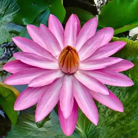 红花睡莲,多年生浮水植物。叶浮于水面,卵形,革质,表面绿色,背面紫红色,幼叶红色,花昼开夜合,浮于…