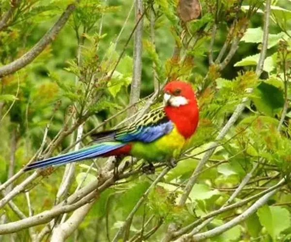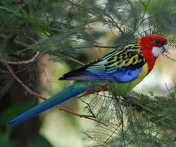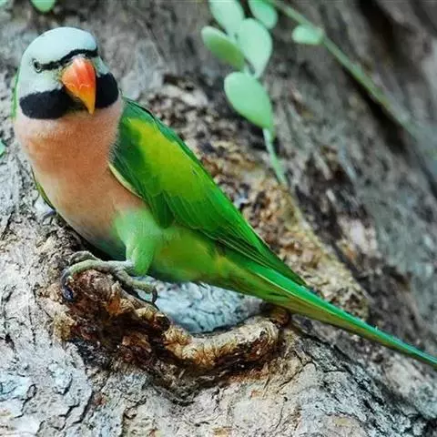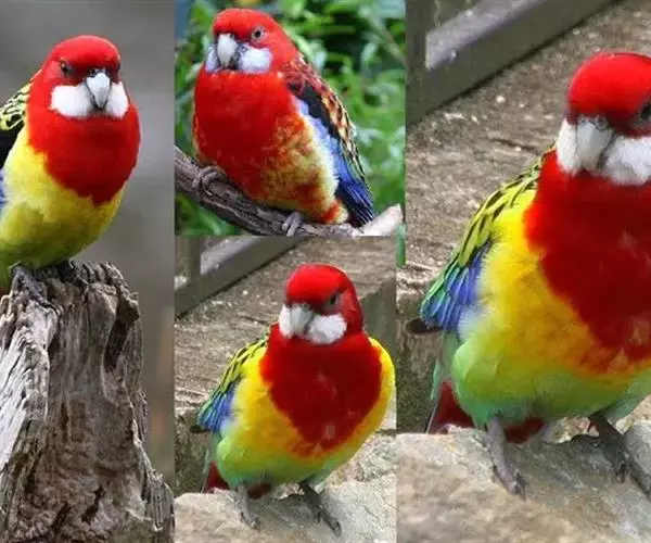 体形特征 30CM~33CM。身上的羽色十分鲜艳,母鸟头部与胸前的红羽比公鸟的羽色暗,面颊白色的部分呈淡灰色,头顶则有一点绿色,而公鸟的红羽为鲜红色,面颊纯白色,头顶红色无绿色参杂,野外数量稳定,全世界约共超过50万只,有3种亚种 ,也是发展出最多变种的玫瑰鹦鹉。青绿的羽色上长有鲜亮的羽毛,背上具鳞片状墨斑。