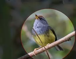 黄绿鹎,小型鸟类,体长19-22厘米。额至头顶暗褐具灰色羽缘,眼先黑色,…