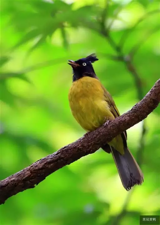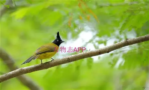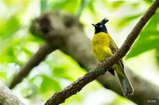 黑冠黄鹎:体长18-21厘米,是一种中等体型偏黄色鹎。整个头、颈、颏、喉黑色,头顶有显著直立的羽冠,…