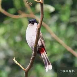 白喉红臀鹎是雀形目鹎科鹎属鸟类,又称红臀鹎、黑头公。额、头顶、枕、眼周和颊的前部黑色,…
