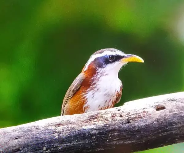 纹喉鹎:体长19厘米,是一种中等体型的偏绿色鹎。特征为头顶、脸颊、颏及喉均具黄色条纹。上体橄榄绿色。…