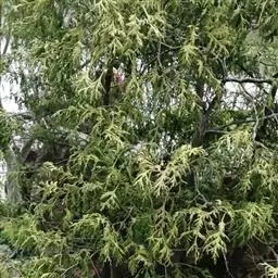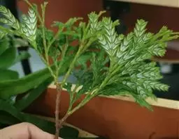 凤尾柏(Chamaecyparis obtusa (Sieb. et Zucc.) Endl.'Filicoides' Dallimore et Jackson)(通用名)灌木,枝条短,末端鳞叶分枝短,扁平,在主枝上排列密集,外观象凤尾蕨状;鳞叶钝,常有腺点。中国庐山、南京、杭州等地栽培供观赏。生长较慢。