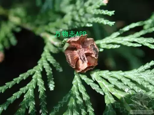 乔木,在原产地高达40米;树冠尖塔形;树皮红褐色,光滑,裂成薄片脱落;生鳞叶的小枝条扁平,排成一平面。鳞叶肥厚,先端钝,小枝上面中央之叶露出部分近方形,长1-1.5毫米,绿色,背部具纵脊,通常无腺点,侧面之叶对折呈倒卵状菱形,长约3毫米,小枝下面之叶微被白粉。雄球花椭圆形,长约3毫米,雄蕊6对,花药黄色。球果圆球形,径8-10毫米,熟时红褐色;种鳞4对,顶部五角形,平或中央稍凹,有小尖头;种子近圆形,长2.6-3毫米,两侧有窄翅。花期4月,球果10-11月成熟。