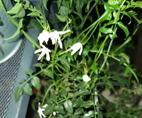 攀援灌木,高1-4米。小枝圆柱形,具棱或沟。叶对生,羽状深裂或具5-9小叶, 素馨花 叶长3-8厘米,宽3-6厘米;叶轴常具窄翼,叶柄长0.5-4厘米;小叶片卵形或长卵形,顶生小叶片常为窄菱形,长0.7-3.8厘米,宽0.5-1.5厘米,先端急尖、渐尖、钝或圆,有时具短尖头、基部楔形、钝或圆。