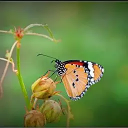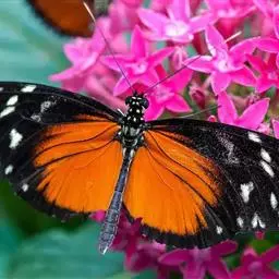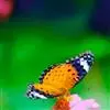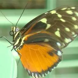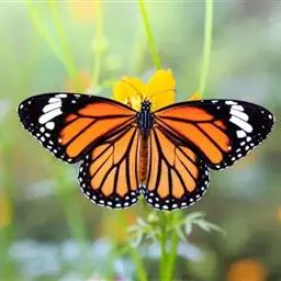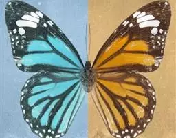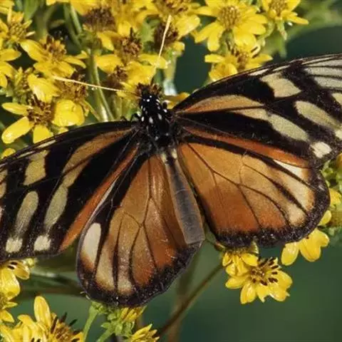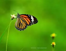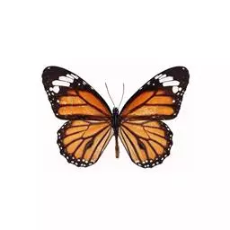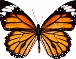 黑脉金斑蝶:翅阔8.6-12.4厘米。雄蝶较雌蝶为大。成年蝶颜色鲜艳,翅膀上有显眼的橙色及黑色斑纹…