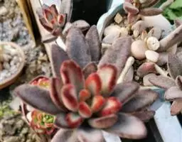 黑法师是景天科莲花掌属植物,自然界不存在分布。紫黑色的叶片呈莲座状层叠排列,给人以庄重神秘之感,…