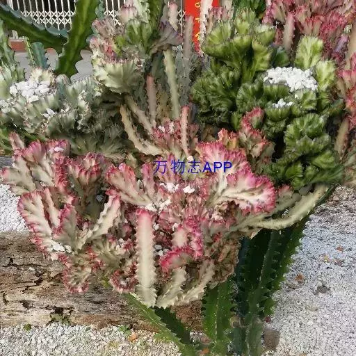 彩春峰(学名:Euphorbia lactea f. cristata ‘Albavariegata’)是大戟科大戟属多年生肉质植物春峰之辉的彩化变种,而春峰之辉又是春晖的斑锦变异品种,春峰则是帝锦的带化变异品种。
