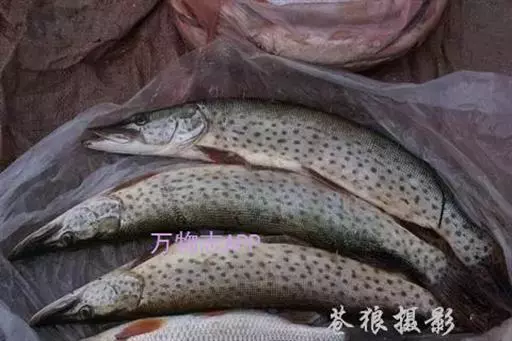 黑斑狗鱼 狗鱼是大型食用鱼,其肉厚刺少,肉质细嫩,新鲜狗鱼可做生鱼片,也可熏制,味道均佳。资源量已有很大衰减。