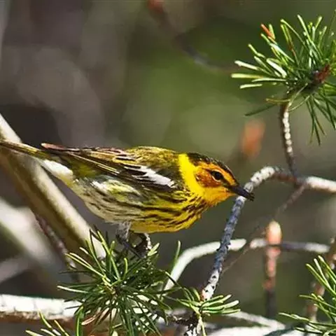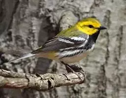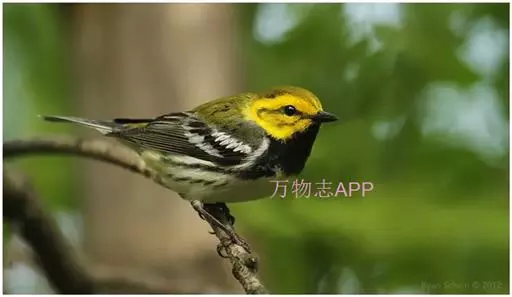 林柳莺(学名:Phylloscopus sibilatrix):体长约11厘米,是一种体型小的黄绿色柳莺。两性相似。上体除两翅和尾羽暗褐色外,余均呈黄绿色;眉纹自嘴基伸向颈后,呈黄色;贯眼纹短,呈暗褐色;脸颊、颏、喉、胸呈黄色,但胸部色淡,腹部为丝光白色。虹膜褐色;上嘴黑褐色,下嘴肉黄色;跗蹠黄褐色。