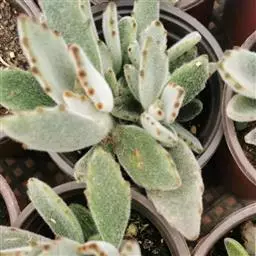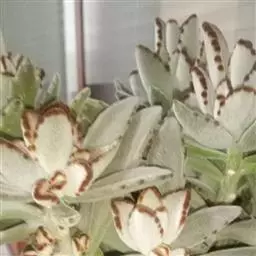 褐斑伽蓝是景天科、伽蓝菜属多年生肉质草本植物或小灌木。全株灰白色,密布白色茸毛。叶片长卵形,…