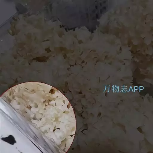 ⑴菌丝体由孢子萌发而成, 在人工培养条件下,菌丝通常呈白色绒毛状,有横隔和分枝,很多菌丝聚集在一起便成菌丝体。和其它食用菌不同的是,菌丝长到一定阶段会形成大量的单细胞粉孢子(也叫分生孢子),在适宜的条件下可萌发成单核菌 丝或双核菌丝。有人在实验中发现,金针菇菌丝阶段的粉孢子多少与金针菇的质量有关,粉孢子多的菌株质量都差,菌柄基部颜色较深。