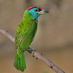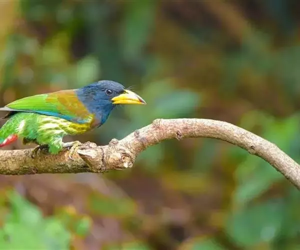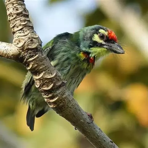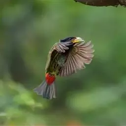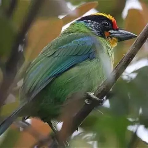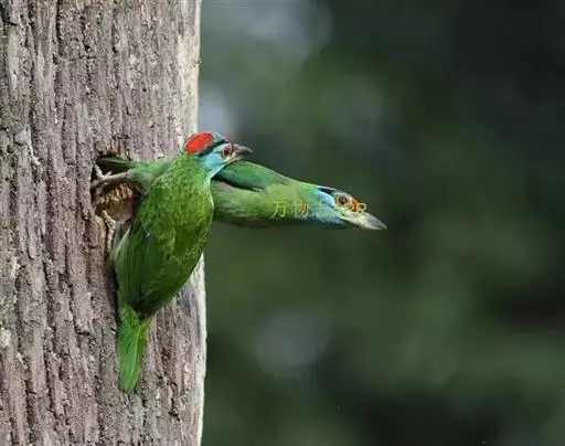 因为拥有良好的保护色,若不鸣叫很难发现它们的身影。以果实、浆果为主食,繁殖期育雏时则常以昆虫喂食幼鸟。常发出单调浑厚的“咯、咯、咯…”叫声,像极了和尚敲打木鱼的声音,加上头部参杂红、黄、蓝、绿、黑五色,所以又称为“森林里的花和尚”。繁殖期会在树干以其强而有力的嘴喙啄洞,巢筑于其内。