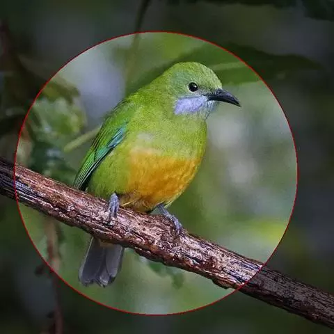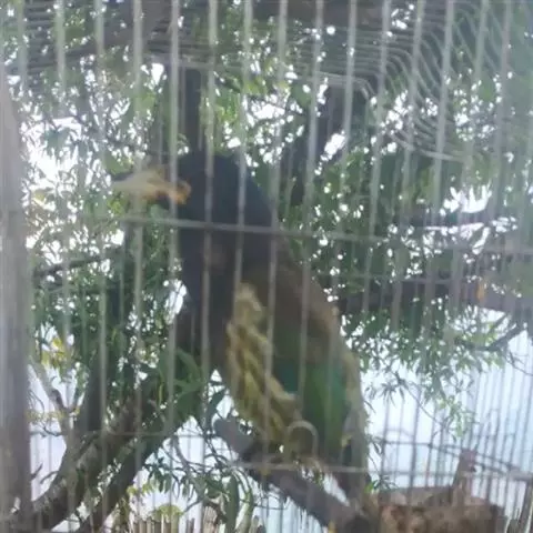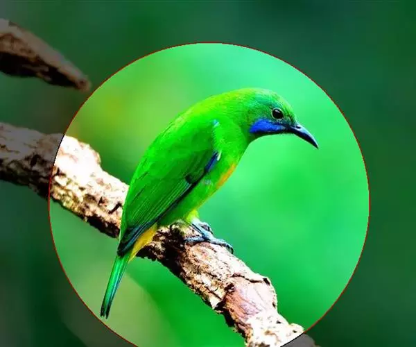 长20cm 嘴粗厚 ,黑色 ,脚铅灰色 。头部大致为蓝色 ,额 、喉黄色 ,眉斑杂有黑色羽毛 ,眼先有红色斑点 ,前颈亦有红斑 。后颈 、背部鲜绿色 , 胸以下鲜黄绿色 。