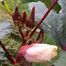 咖啡黄葵 Moench)亦称黄秋葵,是锦葵科一年生草本植物。茎圆柱形,疏生散刺。叶掌状,裂片阔至狭,…