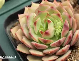 吉娃莲,景天科拟石莲花属,别名:吉娃娃,吉娃莲,植株小型,无茎的莲座叶盘非常紧凑。卵形叶较厚,带小尖,…