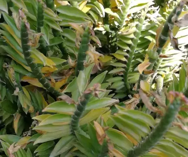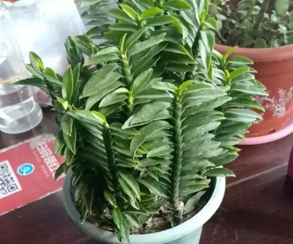 株高约10-30公分,茎叶肥厚多肉,色泽翠绿,叶呈2列扁平排列,形似蜈蚣,姿态奇特,适合小盆栽。株高约10-30公分,茎叶肥厚多肉,色泽翠绿,叶呈2列扁平排列,形似蜈蚣,姿态奇特,适合小盆栽。