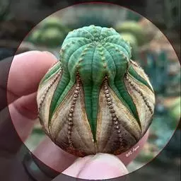 布纹球,是大戟科大戟属植物。植株小球形,表皮灰绿色,中有红褐色,…