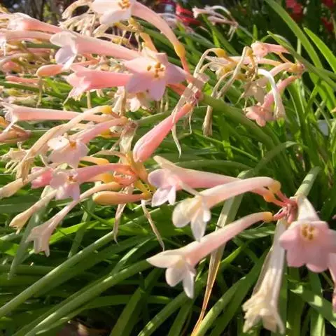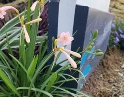 小韭兰学名韭菜莲又名风雨花、菖蒲莲、红玉帘和旱水仙,多年生草本,鳞茎卵球形,基生叶常数枚簇生,线形…