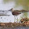 林鹬体长约20厘米,体型略小,纤细,褐灰色,腹部及臀偏白,腰白。上体灰褐色而极具斑点;眉纹长,…