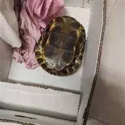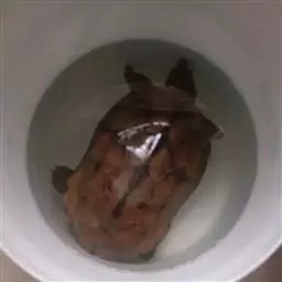 拿健康龟较重;若感觉龟体较轻,则为不健康龟的表现。将龟放入浅水中(水位达龟背甲高度的一半),观察到龟若大量、长时间饮水,则为不健康龟。再将龟竖立,开其口观察舌表面的颜色。如健康的龟,舌表面为粉红色,且湿润,表面有薄薄的白苔或薄黄苔;如为不健康的龟,舌表面为白色、赤红、青色,舌苔厚,呈深黄、乳白色或黑色。健康龟的鼻部干燥无龟裂,不健康龟的鼻部红肿、有鼻液,患病严重的龟,有的鼻孔会出血。健康龟的口腔四周清洁无黏液。
