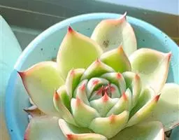 吉娃莲,景天科拟石莲花属,别名:吉娃娃,吉娃莲,植株小型,无茎的莲座叶盘非常紧凑。卵形叶较厚,带小尖,…