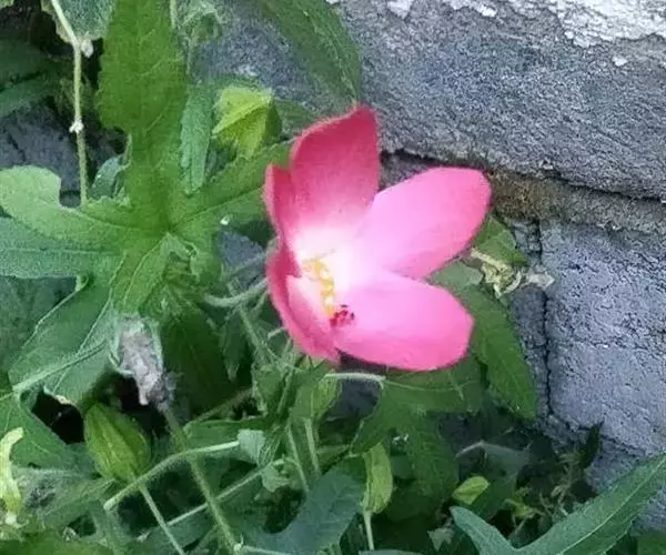 花单生于叶腋,花梗纤细,长4-7厘米,密被糙硬毛;小苞片6-12,线形,宽1-1.7毫米,长约1.5厘米,疏被长硬毛;花萼佛焰苞状,长约7毫米,先端具5齿,密被细绒毛;花红色或黄色,直径4-5厘米,花瓣倒卵状长圆形,长3-4厘米;雄蕊柱长约2厘米,平滑无毛;花柱枝5,柱头扁平。