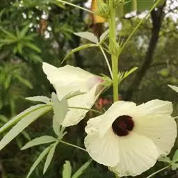 咖啡黄葵 Moench)亦称黄秋葵,是锦葵科一年生草本植物。茎圆柱形,疏生散刺。叶掌状,裂片阔至狭,…