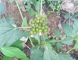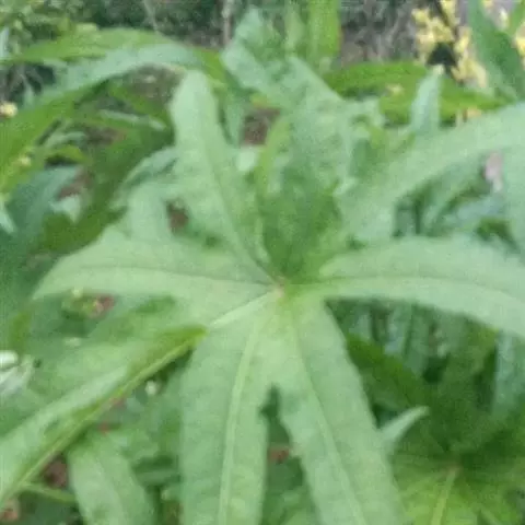 箭叶秋葵(Abelmoschus sagittifolius (Kurz) Merr.)又名五指山参、红花马宁等。锦葵科秋葵属。多年生草本,高40-100厘米,具萝卜状肉质根,小枝被糙硬长毛。蒴果椭圆形,4长约3厘米,直径约2厘米,被刺毛,具短喙;种子肾形,具腺状条纹。花期5-9月。