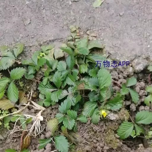 蔷薇科 ,多年生草本,全株有柔毛;匍匐茎长。小叶片倒卵形至菱状长圆形,长2-3.5(-5)厘米,宽1-3厘米;花单生于叶腋;直径1.5-2.5厘米;瘦果卵形,长约1.5毫米,光滑或具不明显突起,鲜时有光泽。花期6-8月,果期8-10月。多野生于山坡、草地上、路旁、沟边或田埂杂草中;全国各地都有分布。全草供药用,有清热解毒、活血散瘀、收敛止血作用,又能治毒蛇咬伤,敷治疔疮等;并用于杀灭蝇蛆。 [1-2]