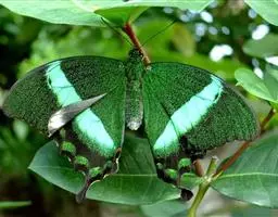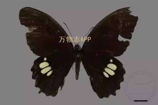 巴黎翠凤蝶中型凤蝶,躯体黑褐色,散布绿色亮鳞。后翅M3脉端有一明显叶状尾突。翅背面底色黑褐色,密布…