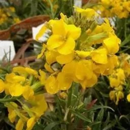 桂竹香(学名:Cheiranthus cheiri L.)是十字花科科桂竹香属植物,多年生草本,高20-60厘米;茎直立,具棱角,下部木质化,具分枝,全体有贴生长柔毛。基生叶莲座状,倒披针形、披针形至线形,顶端急尖,基部渐狭;叶柄长7-10毫米;茎生叶较小,近无柄。总状花序果期伸长;花桔黄色或黄褐色,芳香;花梗长4-7毫米;萼片长圆形;花瓣倒卵形,有长爪。长角果线形,直立;果梗上升;种子卵形,浅棕色,顶端有翅。花期4-5月,果期5-6月。