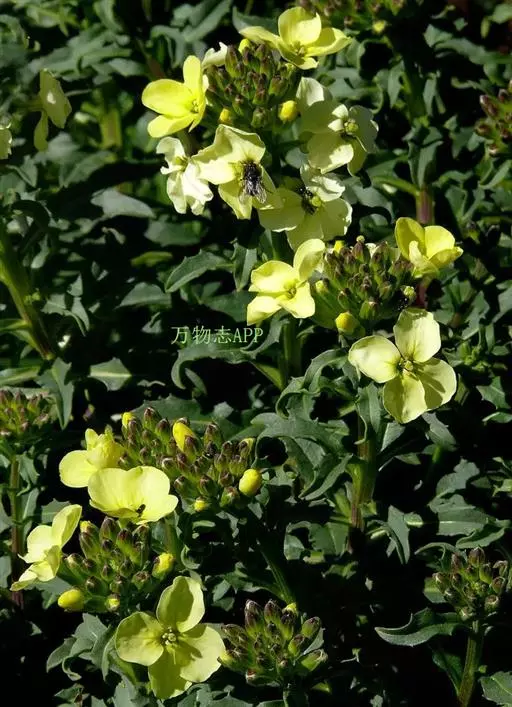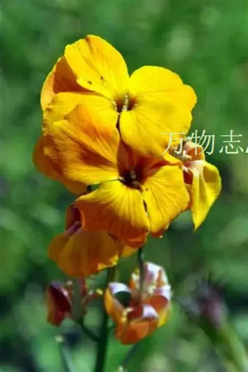 叶柄长7-10毫米;茎生叶较小,近无柄。总状花序果期伸长;花桔黄色或黄褐色,直径2-2.5厘米,芳香;花梗长4-7毫米;萼片长圆形,长6-11毫米;花瓣倒卵形,长约1.5厘米,有长爪;雄蕊6,近等长。长角果线形,长4-7.5厘米,宽3-5毫米,具扁4棱,直立,劲直。