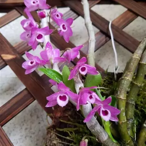 通常选用四壁多孔的塑料或陶瓷花盆,用碳根、泥炭藓、树皮块、木炭块等作盆栽材料。根据兰苗的大小,选择不同规格的花盆,但不宜用大盆栽小苗口上述栽好材料在使用前必需在清水中浸泡1天以上备用。盆底要多垫大瓦片或碎砖块,深度至盆底约1/3处,然后将兰苗放于盆中央,并在一旁插一细竹竿以固定兰苗,再填入其他栽培材料,注意根与根之间用材料隔开。