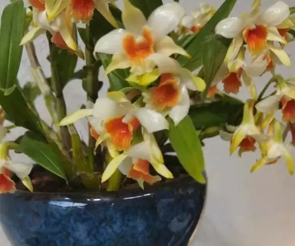 华石斛:茎直立或弧形弯曲而上举,细圆柱形,偶尔上部膨大呈棒状,不分枝,具多个节。叶数枚,二列,通常…