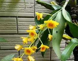 报春石斛,是兰科石斛属植物,茎下垂,厚肉质,圆柱形,不分枝,具多数节;叶纸质互生于整个茎上,…