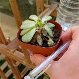 刚移栽的组培苗对水分很敏感,缺水则生长缓慢、干枯、成活率低。而喷雾过多则渍水烂根,温度高、湿度大时还易引发软腐病大规模发生。移栽后一周内(幼苗尚未发新根)空气湿度宜保持在90%左右,一周后,植株开始发新根,空气湿度可保持在70%-80%。种植畦干湿交潜有利于发根长芽。忌强光直射,春秋两季早上可见阳光,冬季可置光照充足处,其他时间置于具有明亮散射光而又通风的地方。越冬温度保持在8-10℃即可。