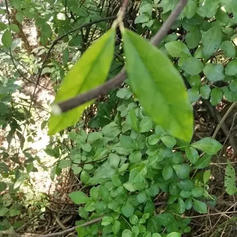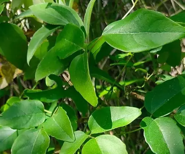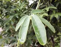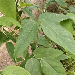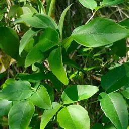 掌状复叶互生或在短枝上的簇生;叶柄直,长7-11厘米;小叶3片,纸质或薄革质,卵形至阔卵形,长4-7.5厘米,宽2-6厘米,先端通常钝或略凹入,具小凸尖,基部截平或圆形,边缘具波状齿或浅裂,上面深绿色,下面浅绿色;侧脉每边5-6条,与网脉同在两面略凸起;中央小叶柄长2-4厘米,侧生小叶柄长6-12毫米。