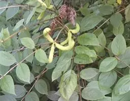 果长圆形,长6-8厘米,直径2-4厘米,直或稍弯,成熟时灰白略带淡紫色;种子极多数,扁卵形,长5-7毫米,宽4-5毫米,种皮红褐色或黑褐色,稍有光泽。花期4-5月,果期7-8月。
