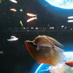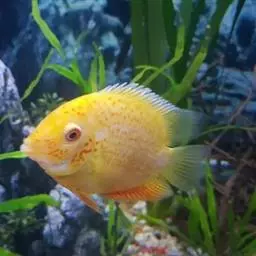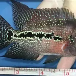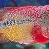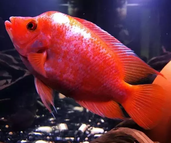 看到它在面颊下缘鲜红的色泽,就可以明白如此称呼是最恰当不过的了。属于大型的南美慈鲷,但它只是静静地停留在某一角落,守卫着属于自己的地盘,在繁殖季节到来时显得异常的暴躁凶猛,常打得别的鱼遍体鳞伤甚至致死,但由于它的遗传因子极强而固定,所以成为从事育种玩家收藏的鱼种。