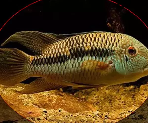 产于南美河川的中型慈鲷,线条较为浑厚而常给人一种易于亲近的感觉,在成熟的雄鱼身上会散发着如黄金般的光泽,同时在其上会出现如珍珠般绚丽的花纹,在争斗时往往会将下颚至喉部鳃后侧的薄膜鼓起,也许看似黄麒麟,所以常引起混淆,最大体长20cm,但个性尚属温和。