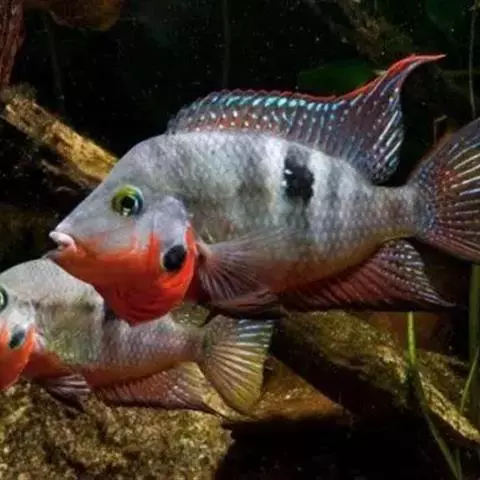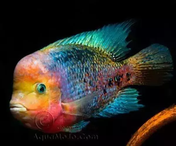 火口鱼 体长20到25公分,原产于中美洲瓜地马拉,喜好弱酸至中性水质,较喜欢干净的软水。性情凶悍,色彩变化大,有些鱼色彩艳丽,但养得不好则毫无特色可言。强健好养,饲饵料不拘。繁殖亦不,难但雌雄鱼的分辨并不容易,且老成雄鱼前额突出,发情时异常凶猛,配对时必须特别小心,否则其伴侣常被攻击致死。由于它是繁殖血鹦鹂的亲鱼之一,因此市面虽不多见,但在鱼场中却是炙手可热的鱼种。