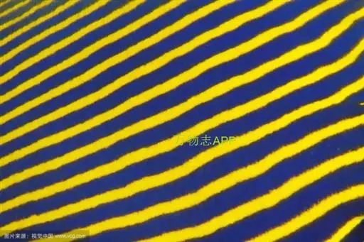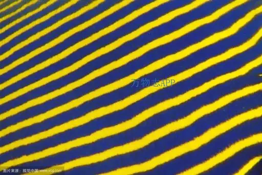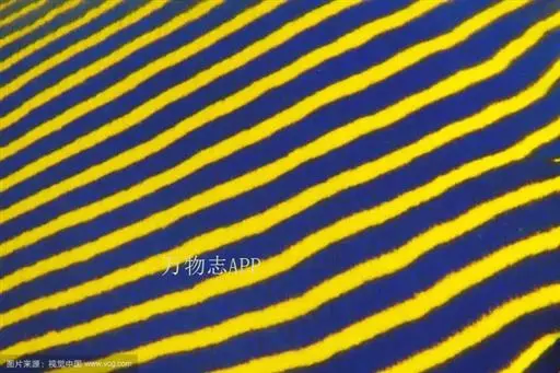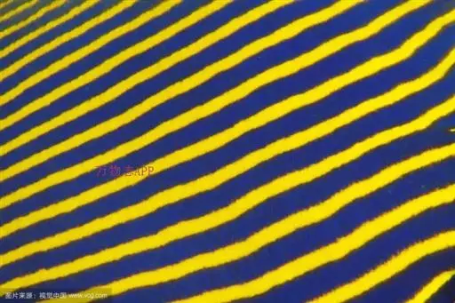 幼鱼时,体一致为橘黄色,体侧具4~6条带黑边之白色至淡青色之横带,背鳍末端具一黑色假眼;成鱼则体呈黄色,横带增至8~10条且延伸至背鳍,背鳍软条部暗蓝色,假眼已消失。由背鳍前方至眼后亦有黑边之淡青色带;臀鳍黄褐色,具数条青色弧形线条;尾鳍黄色。